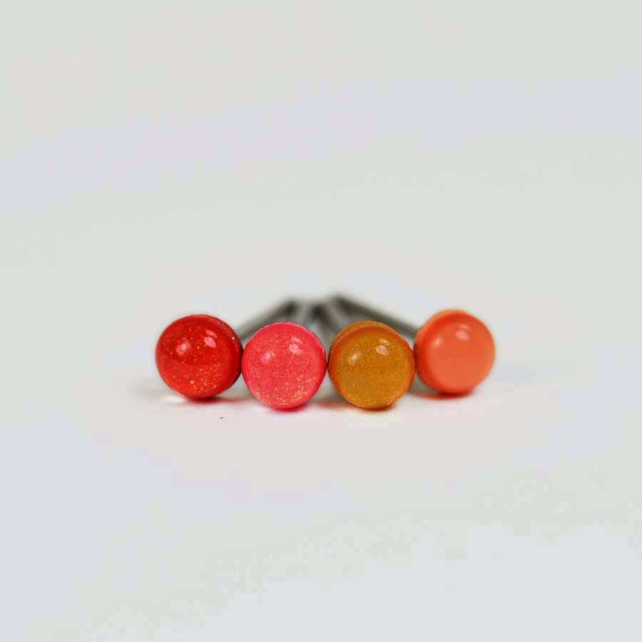 A: All POP Jewelry Studio colors are original. I have developed my own color formulas and mix all colors from polymer clay by hand. I also specialize in teeny tiny stud earrings. Having multiple piercings myself I wanted to offer colorful teeny studs for all.