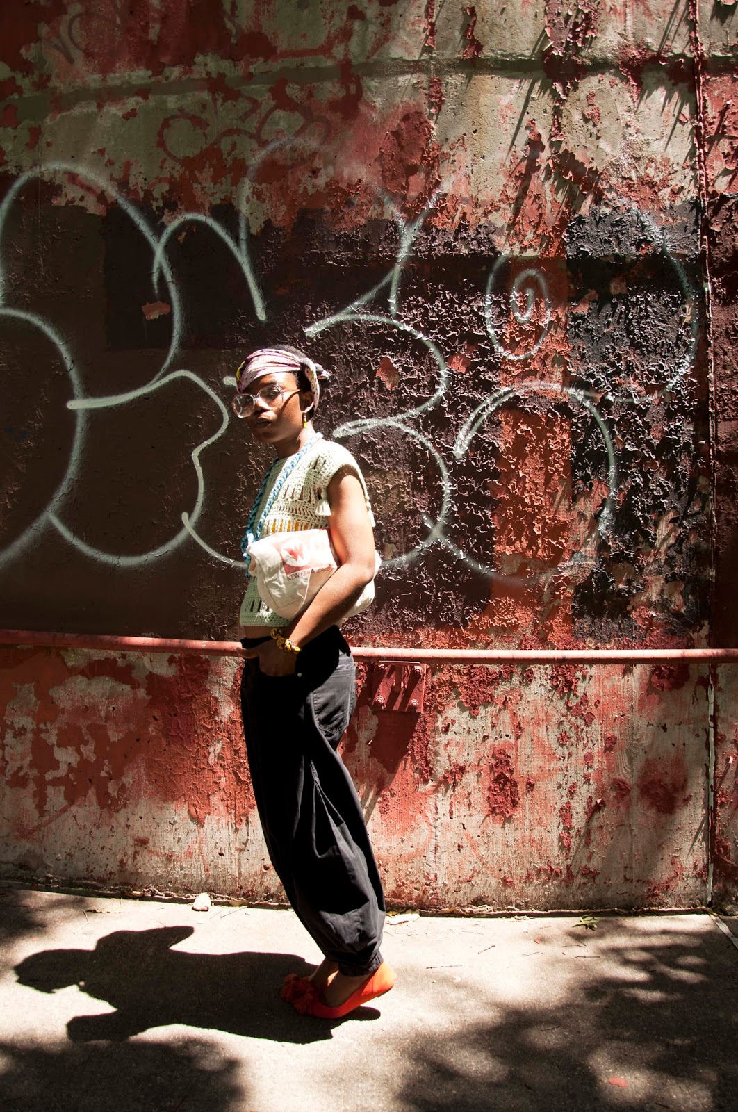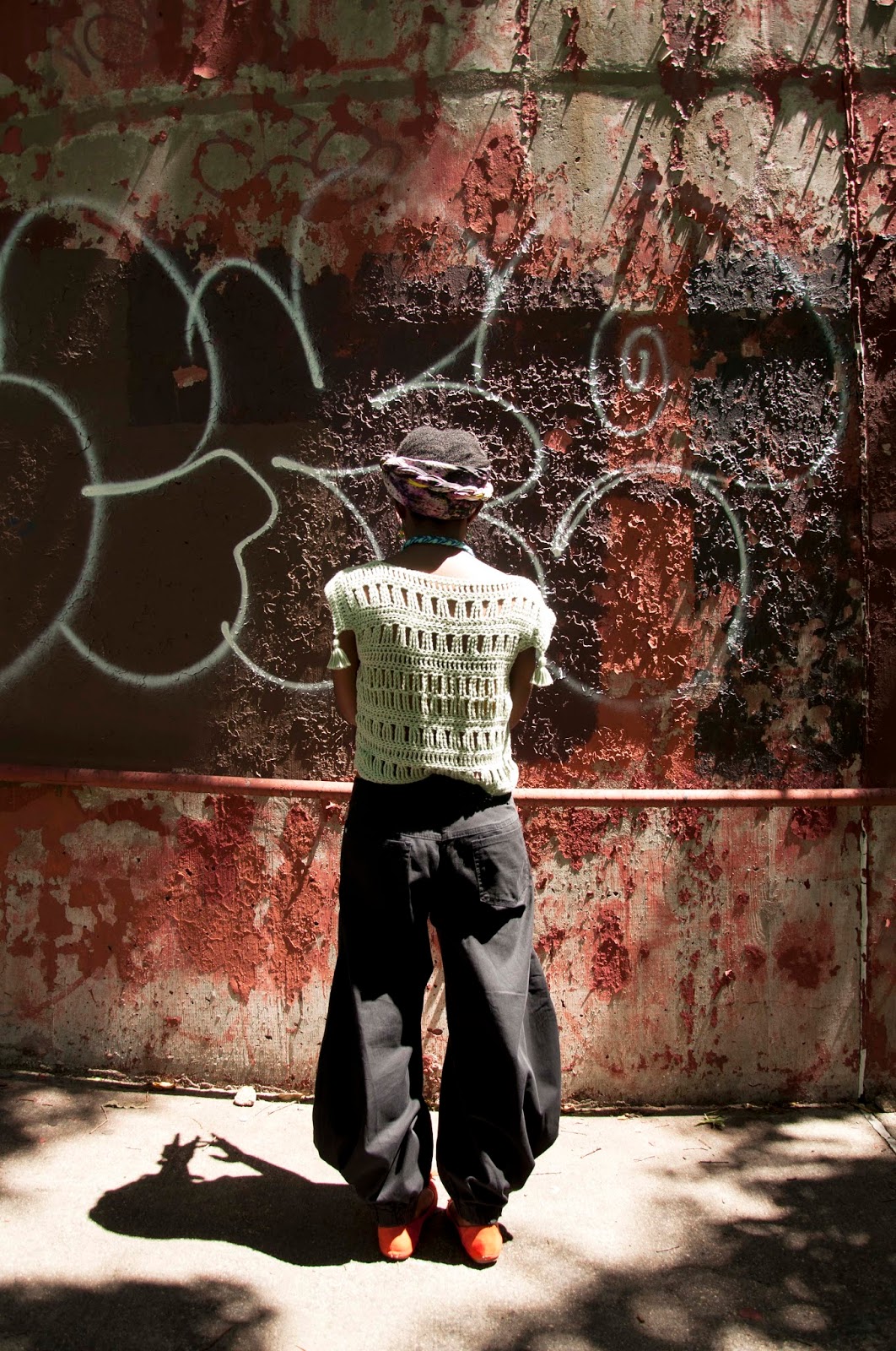I am becoming proud of wearing the same pieces and enjoying newer ways to style them. For instance, I love that I have had this pair of harem pants for almost four years. Although I call them my Aladdin’s I actually feel more Peter Pan-ish in them. I remember once skipping across a street in Brooklyn in them and getting really excited when they filled up with air. I love how breezes find my skin through my Kasoa crochet blouse and how every step I take make the tassels twirl in dance. The shoes, also almost four years old, are the funnest and most comfortable pair of flats I have ever owned and they come with a particular interesting story which I like to keep to myself. 😛