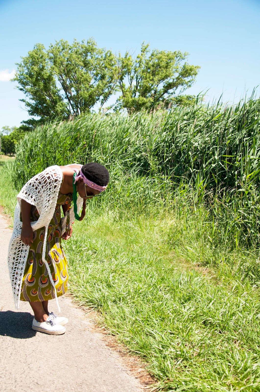 The photo above is very candid! I was trying to find my place marker when Karma shot me. 🙂 The headband was made for my Mawusi SS15 collection. What I like most about it are the little fabric puffs because they are very nice to play with. The thing is you can’t have one because they have been discontinued. The crochet duster was also a sample from the same SS15 collection. As it was a little too long, I cut it, expecting the whole thing to fall apart yet hoping that it wouldn’t. It survived with a fantastic grunge finish. This too is discontinued so you can’t have any.